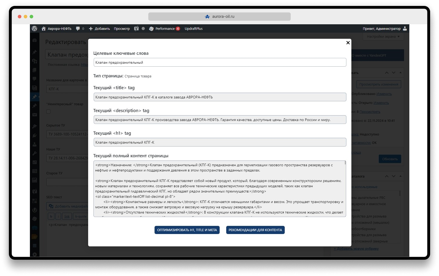 - Все подготавливаемые промпты учитывают не только существующие заголовки и тэги, но и полный контент страницы (включая данные из ACF-полей).